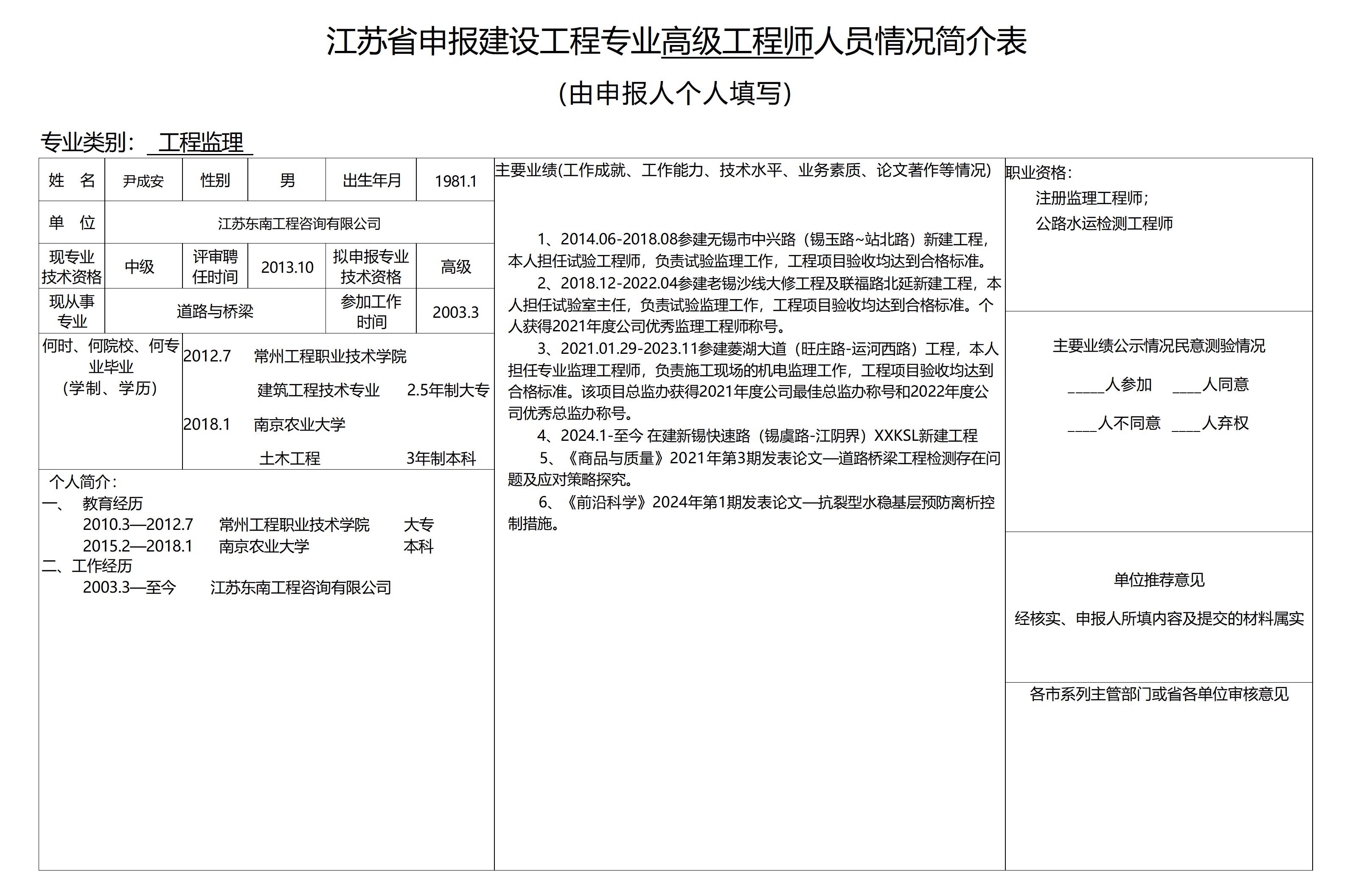 根據《江蘇省建設工程專業技術資格條件(試行)》規定,2025年度有林蘊韜等11名同志擬申報江蘇省住房和城鄉建設廳建設工程專業高級工程師。為體現公開、公平、公正原則,廣泛聽取群眾意見,現將擬申報人員信息予以公示。