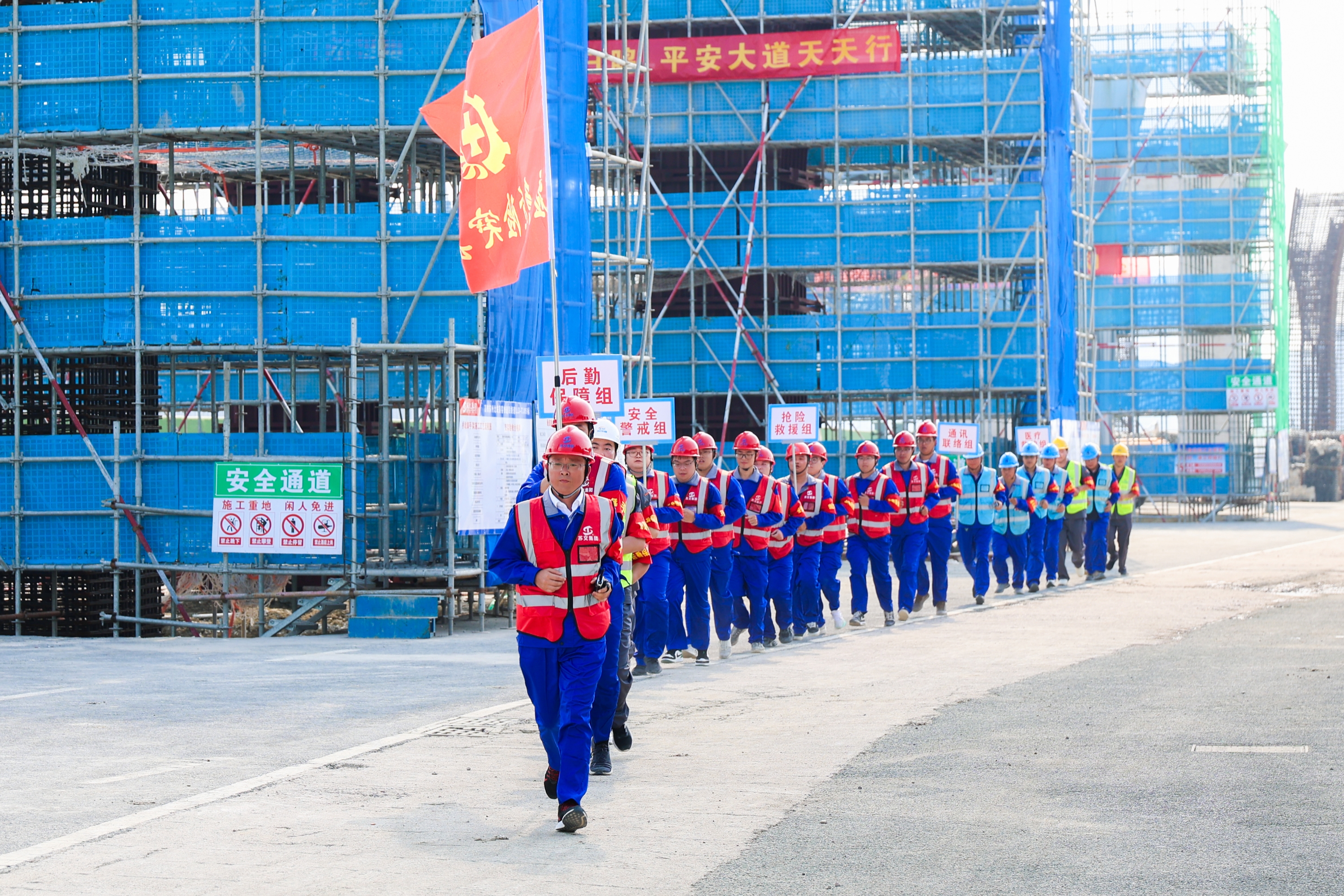 蘇州北站落客快速聯(lián)絡(luò)道工程高墩柱施工屬高空作業(yè),風(fēng)險(xiǎn)大。本次演練由項(xiàng)目部主導(dǎo)策劃、總監(jiān)辦參與演練處置流程制定并全程協(xié)辦,項(xiàng)目經(jīng)理擔(dān)任本次應(yīng)急演練現(xiàn)場指揮,總監(jiān)擔(dān)任總指揮,模擬墩柱作業(yè)平臺(tái)發(fā)生人員墜落事故后的應(yīng)急處置流程,重點(diǎn)檢驗(yàn)“預(yù)案啟動(dòng)-現(xiàn)場救援-醫(yī)療聯(lián)動(dòng)”全環(huán)節(jié)響應(yīng)機(jī)制。