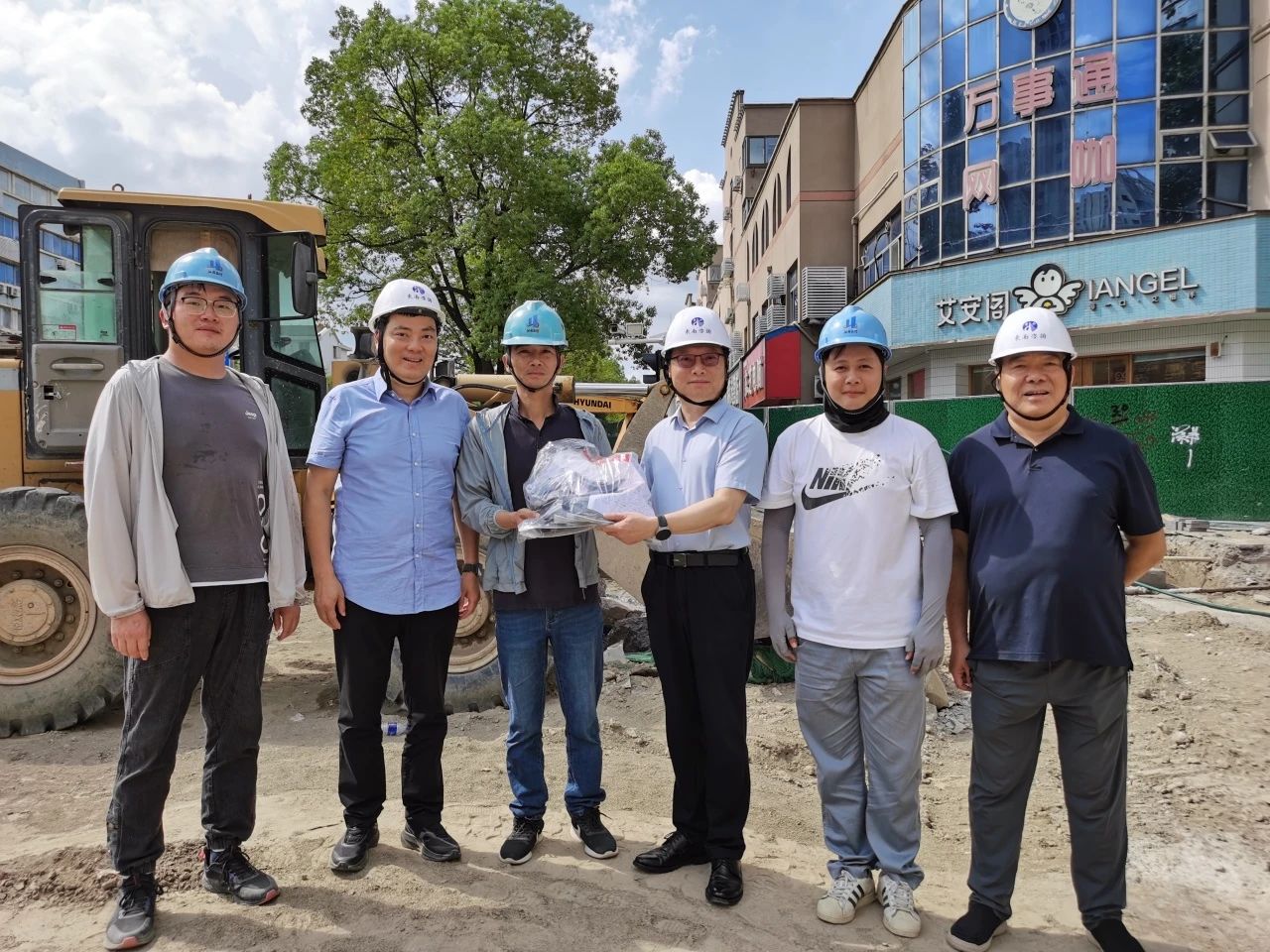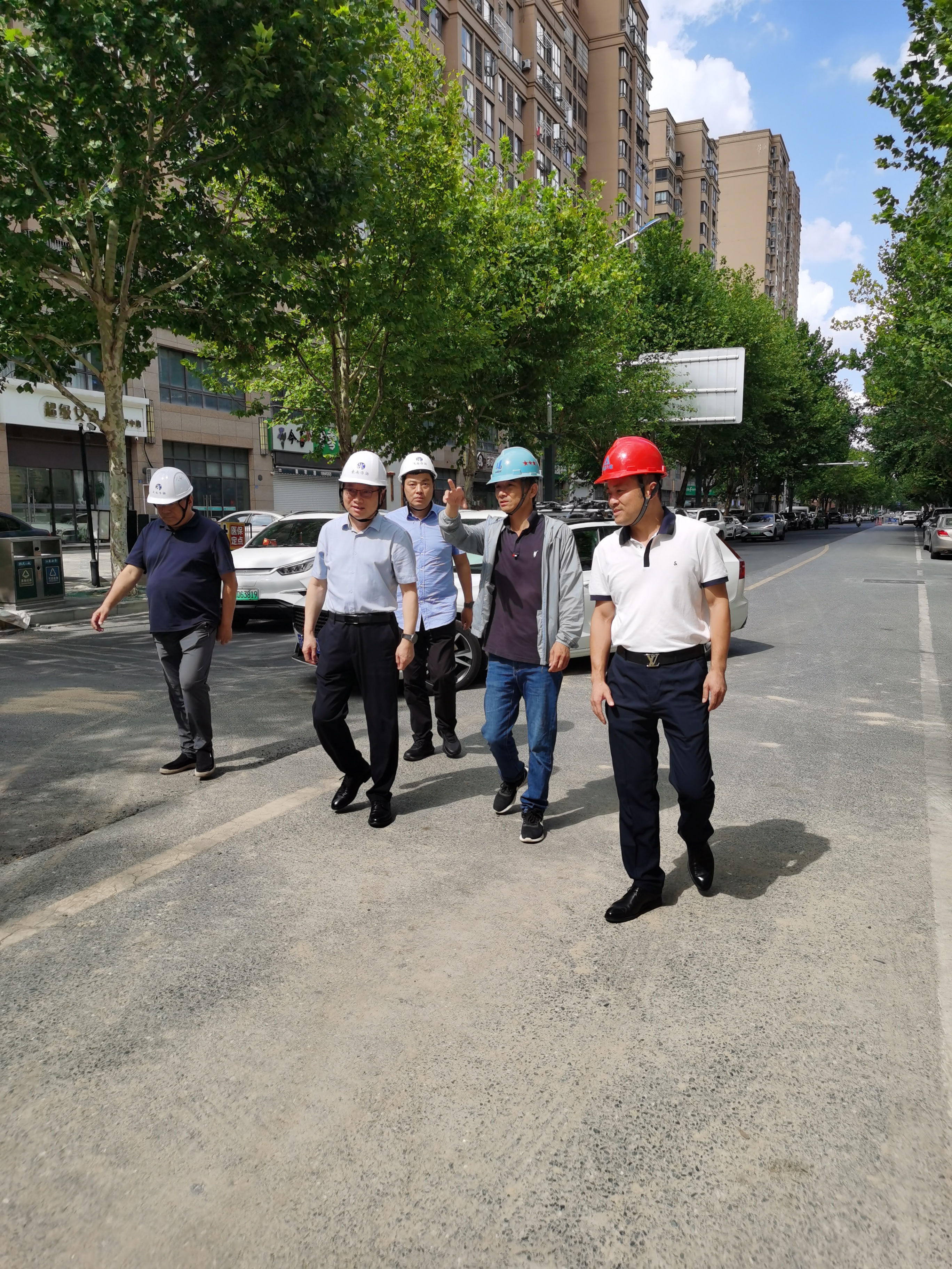 2025年7月22日15時許,如皋市氣溫突破37℃。高溫炙烤,難阻工程建設(shè)步伐。我公司承監(jiān)的如皋市老舊排水管網(wǎng)改造監(jiān)理項目現(xiàn)場,工作人員正揮汗如雨,緊張有序的忙碌著。此時,東南大學(xué)資產(chǎn)經(jīng)營有限公司董事長邱衛(wèi)東在公司總經(jīng)理尤鋆、副總經(jīng)理范越宇陪同下來到施工現(xiàn)場,慰問高溫下堅守監(jiān)理崗位的一線監(jiān)理員工,送去防暑降溫慰問品,并檢查現(xiàn)場高溫安全生產(chǎn)專項工作落實情況。